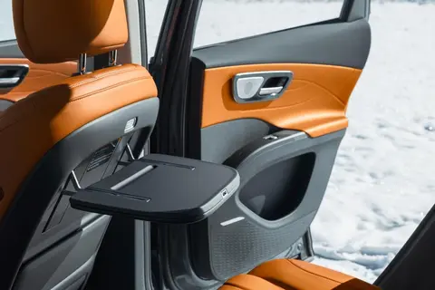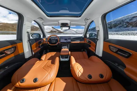 这一次内饰最大的亮点是前排的10层云感SPA座椅,云感座椅,腰部有3层气袋支撑,不是顶配车型也能有主副驾的按摩、通风、加热功能,还配备了副驾腿托;前排支持躺平式电感沙滩椅功能:前排座椅支持170°放倒功能,新势力车型常见的小桌板也配备了,不过预计会在高配车型才提供。