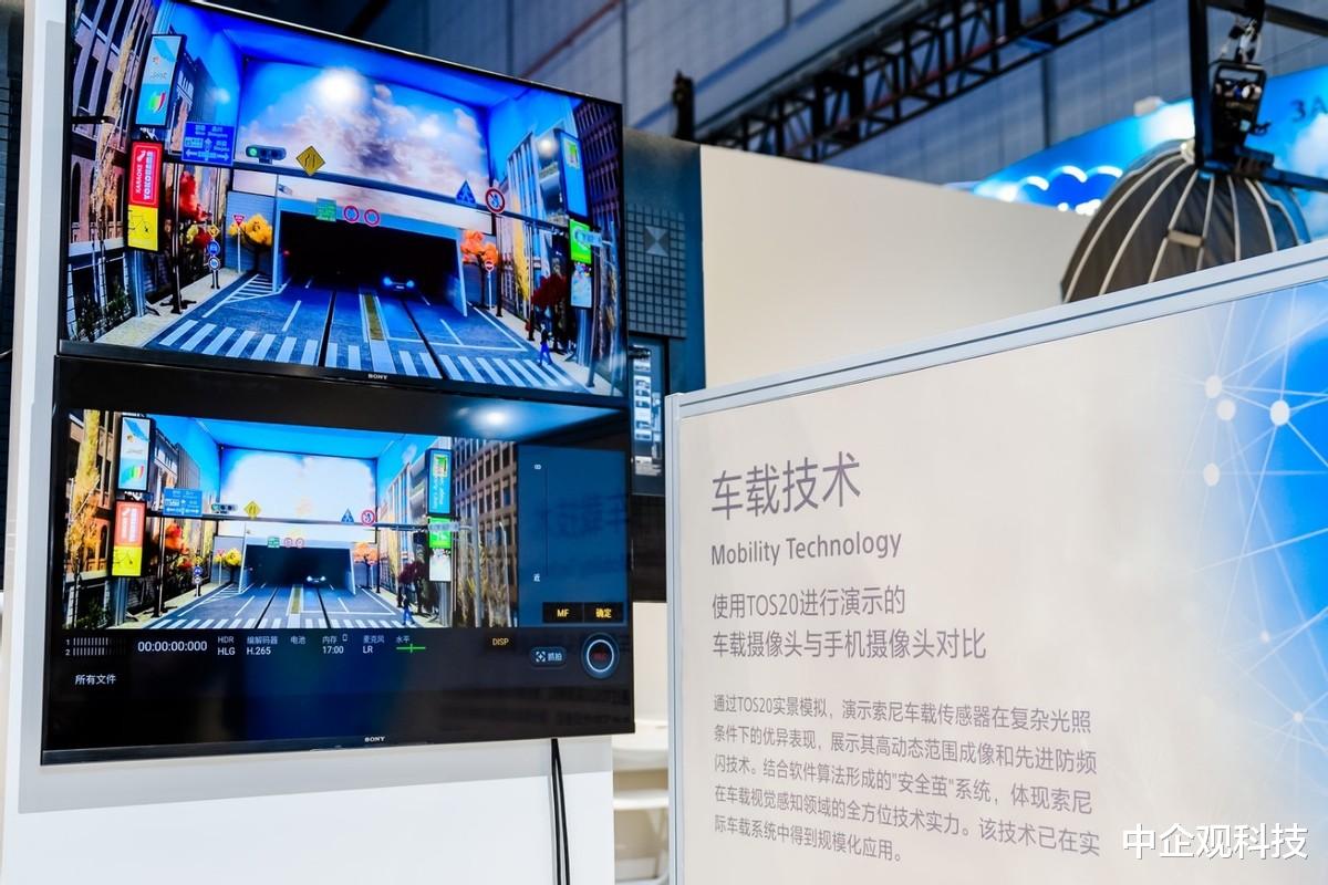 痛车另一侧是索尼半导体车载CMOS传感器模拟展示区,基于“安全茧”(Safety Cocoon)理念设计——该理念旨在通过多传感器与算法在车身四周构建360度感知保护网络,提早发现并提示潜在风险。作为“安全茧”的核心,索尼车载图像传感器持续迭代,借助高动态范围(HDR)与LED防闪烁(LFM)技术,在隧道出入口、逆光、夜间及LED信号灯等复杂场景中稳定捕捉细节,为ADAS(高级辅助驾驶系统)提供可靠影像依据。展区内,观众可通过搭载ISX031图像传感器的摄像头,通过与手机摄像头拍摄效果的对比来直观感受其在极端光照下的优异表现。该传感器具备高像素与宽动态范围,助力系统更早、更准确地识别目标,从而提升驾驶的安全性与从容度,展现索尼在车载传感领域的核心优势。