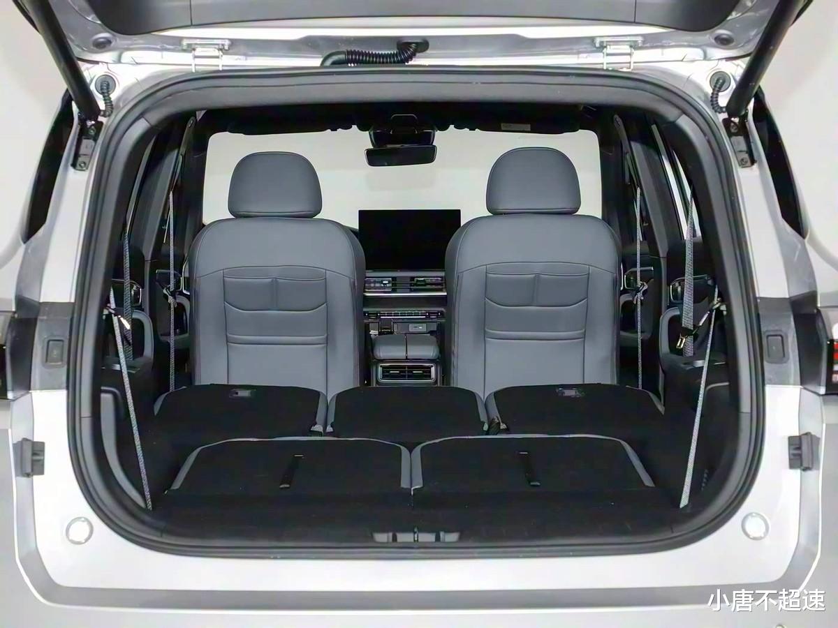 此次改款另一个显著变化是空间布局更加灵活。新车在原有6座版基础上,首次增加了5座版本,并且除入门款外,其余配置均可选装7座。6座版的第二排为两个独立座椅,支持前后滑动和靠背角度调节,高配车型更进一步加入了通风、加热和按摩功能。在装载能力上,5座状态下的后备厢容积为628升,当第三排座椅完全放平后,最大容积可扩展至2050升。