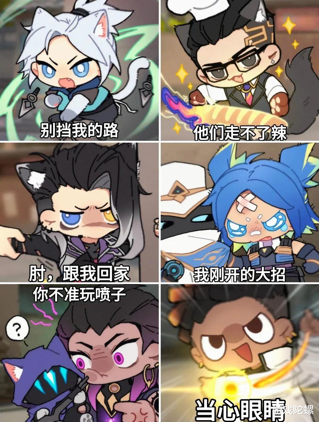 还有年轻感,前面有提到瓦的产品设计潮流且有活力,而这些活力在游戏之外得到了更强力的体现。借助游戏先天的潮流和社交属性,《无畏契约》在互联网娱乐生态中迅速找到了自己的位置——说得再明确一些,就是作为“梗载体”,它太过于超模了。