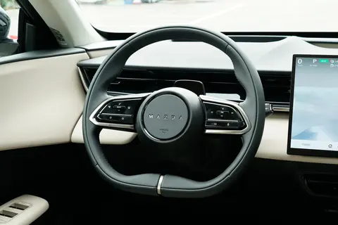 进入车内,马自达EZ-60 2025款 增程 200 Air的内饰设计同样令人印象深刻。座舱采用了简约而实用的布局,26.45英寸的中控屏成为视觉焦点,屏幕分辨率高达5K,显示效果细腻清晰。座椅使用仿皮材质,触感舒适,运动风格设计也为驾驶者提供了较好的包裹性。方向盘为皮质材质,支持上下和前后调节,配备多功能控制按键,操作便利性值得肯定。车辆还标配不可开启全景天窗,搭配遮阳帘,既提升了车内的通透感,也保证了日常使用的舒适性。此外,前排还配备了双区自动空调和PM2.5过滤装置,车内空气质量管理表现不错,为乘客提供了较为舒适的乘坐环境。