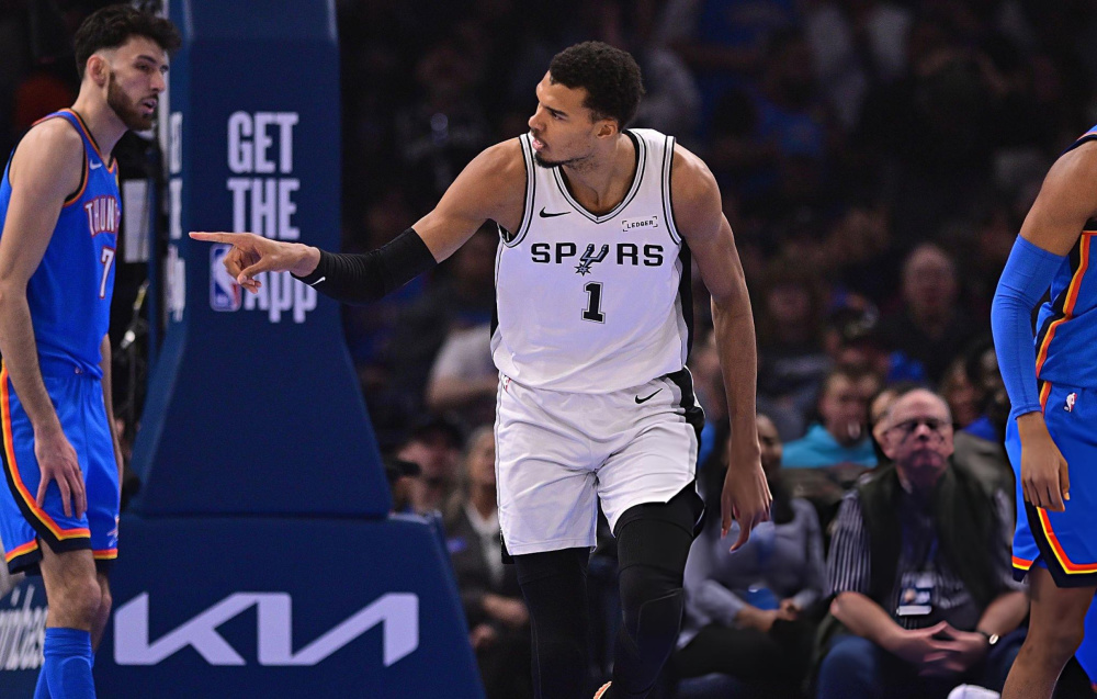 首节比赛开始之后,文班亚马连续多次单打霍姆格伦得手,首节拿到5分3篮板。次节比赛中,文班亚马状态下滑,仅完成一次跳投和一次上篮,单节6中2仅得到5分。