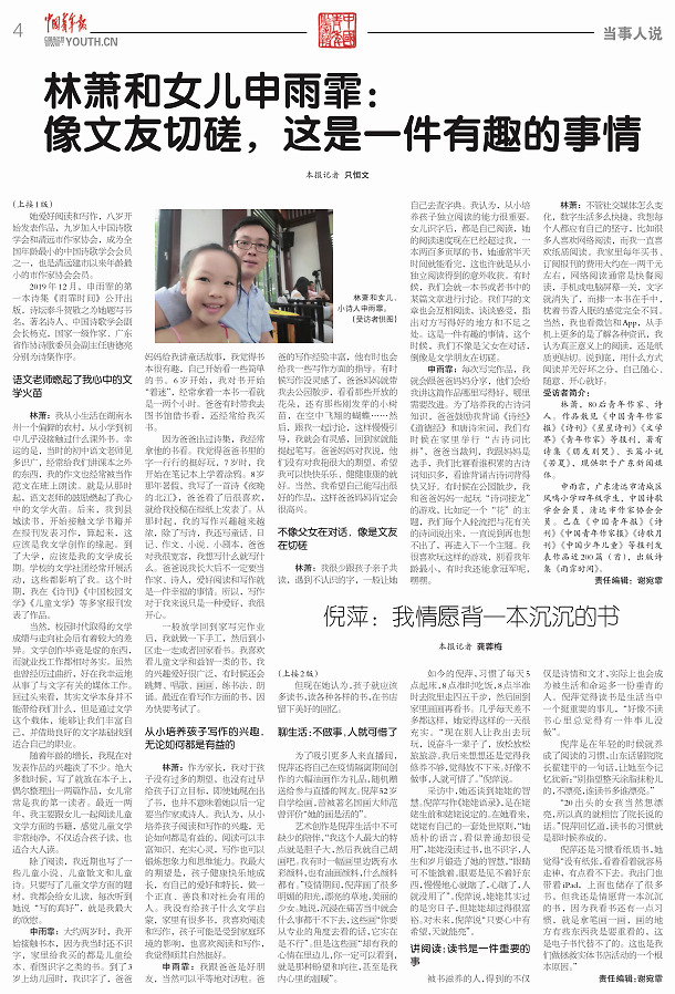 青年作家林萧和女儿申雨霏:像文友切磋,这是一件有趣的事情