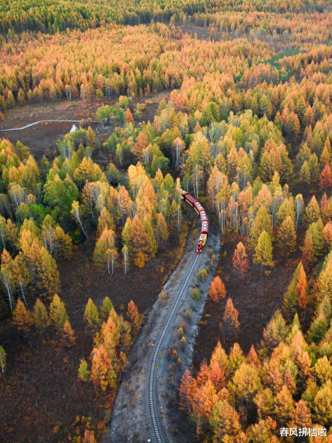莫尔道嘎国家森林公园是中国面积最大的森林公园,铁路穿行其中,如同开往秋天的童话列车,白桦林金光灿烂,樟子松墨绿依旧,红橙黄绿交织成无边画卷。