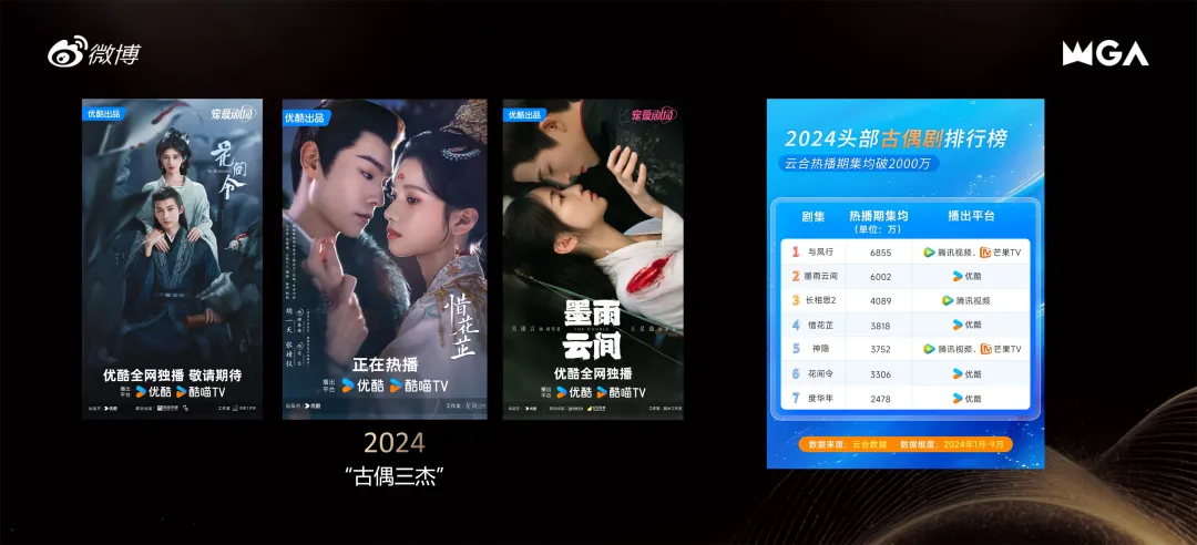 同样是大众赛道、常规题材,只是多花了心思,在切入点和共鸣点上找到贴近当下的角度,就能让故事重新焕发光彩、占得先机,这样的洞察也帮助优酷在2024古偶剧排行榜上,前七里占据四席。