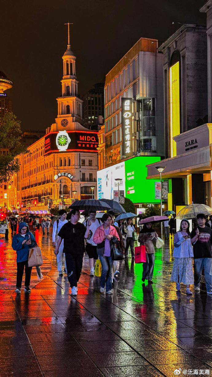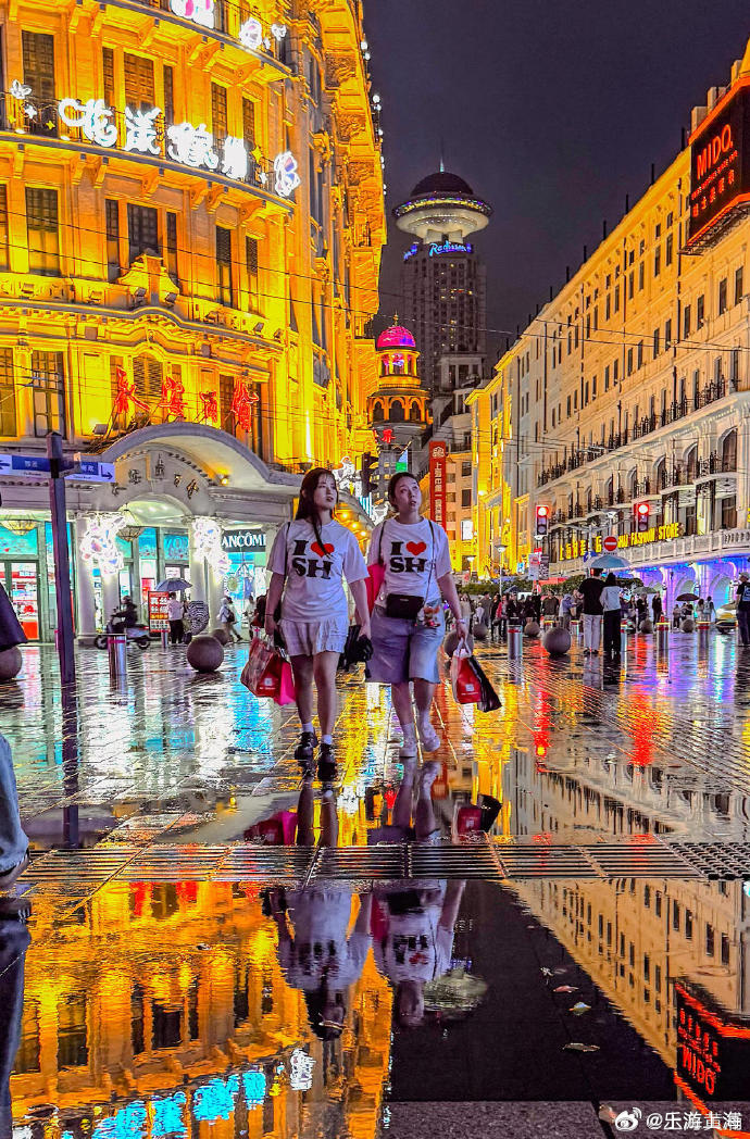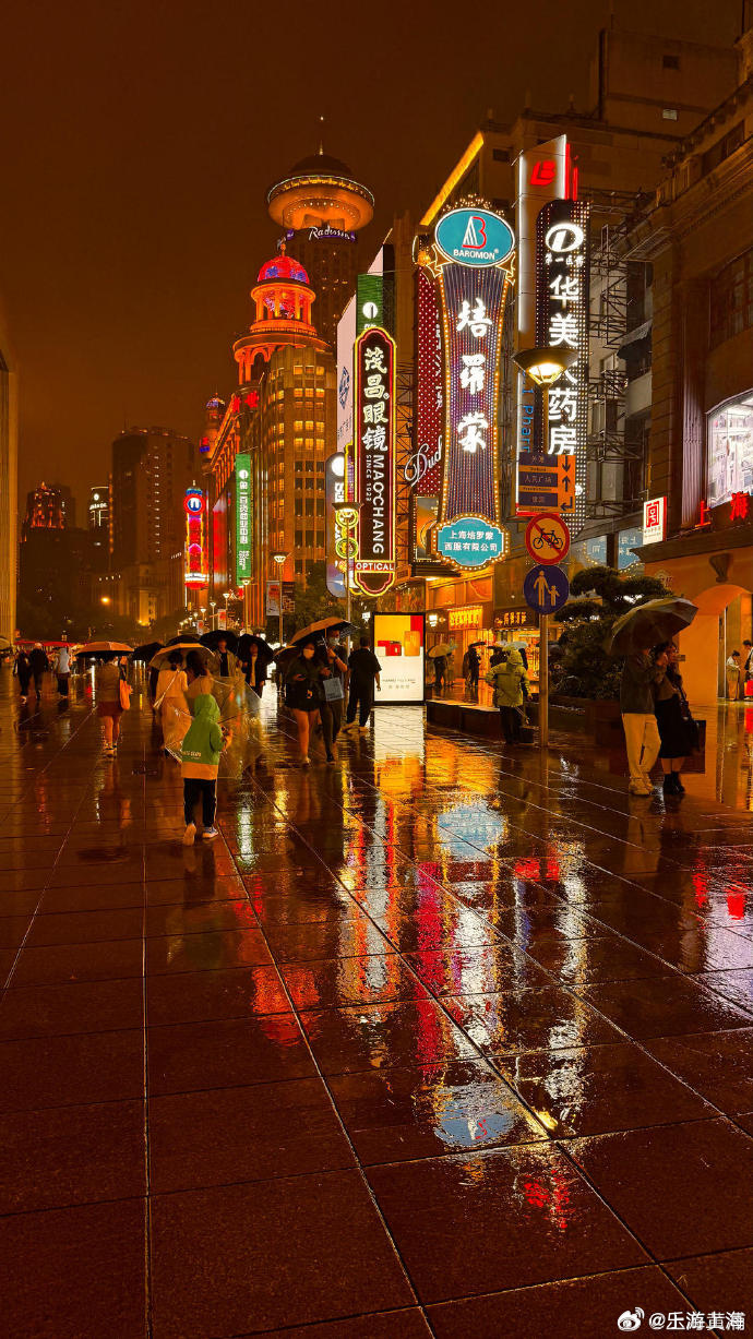 霓虹光在地面流淌 百年建筑秒变科幻片↓