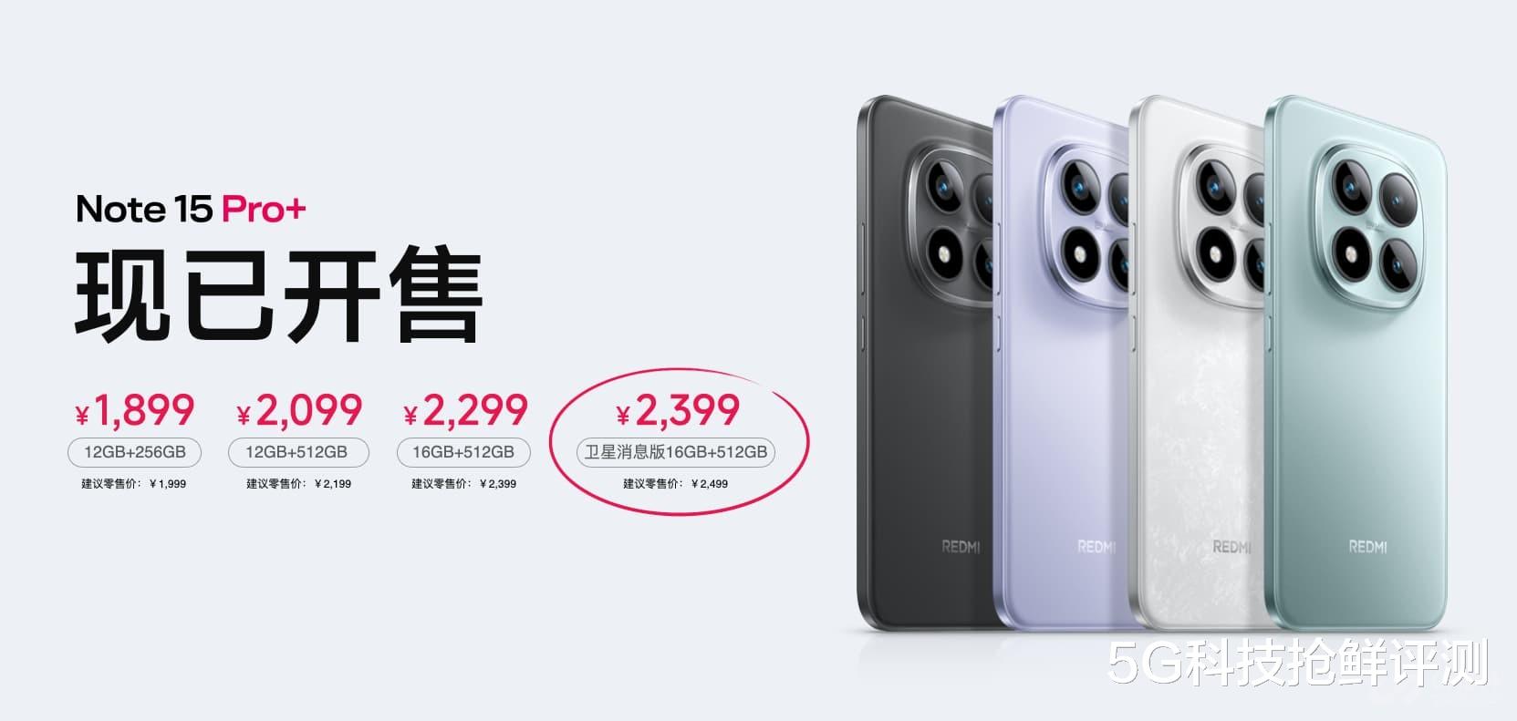 REDMI Note 15 系列和REDMI Pad 2 现已开售,REDMI Note 15 Pro+ 12GB + 256GB 版售价1899元,12GB + 512GB 版售价2099元,16GB + 512GB 版售价2299元,16GB + 512GB 卫星消息版售价2399元。REDMI Note 15 Pro 8GB + 256GB 版售价1399元,12GB + 256GB 版售价1599元,12GB + 512GB 版售价1799元。8月21日-24日首销期间价值925元权益免费送,包含2年进水保、2年碎屏保、2年电池盖保、2年电池盖保和5年电池保。