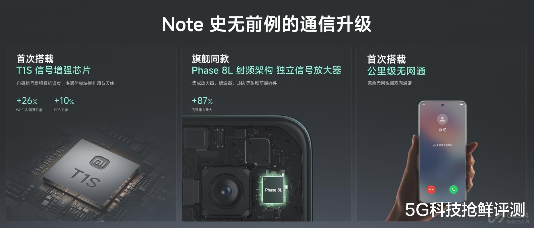REDMI Note 15 Pro+ 全面普及旗舰通信能力,首次搭载小米澎湃 T1S 信号芯片,WiFi&蓝牙性能提升 26%、GPS 性能提升 10%。升级旗舰同款 Phase8L 射频架构搭配独立 N41 信号放大器,信号能力较上代提升 87%。并联合中国移动深度联调弱网、拥塞场景的用网体验,专项优化 79 个典型场景,实测杭州东站东广场,暑期人流高峰,看抖音直播全程无卡顿。