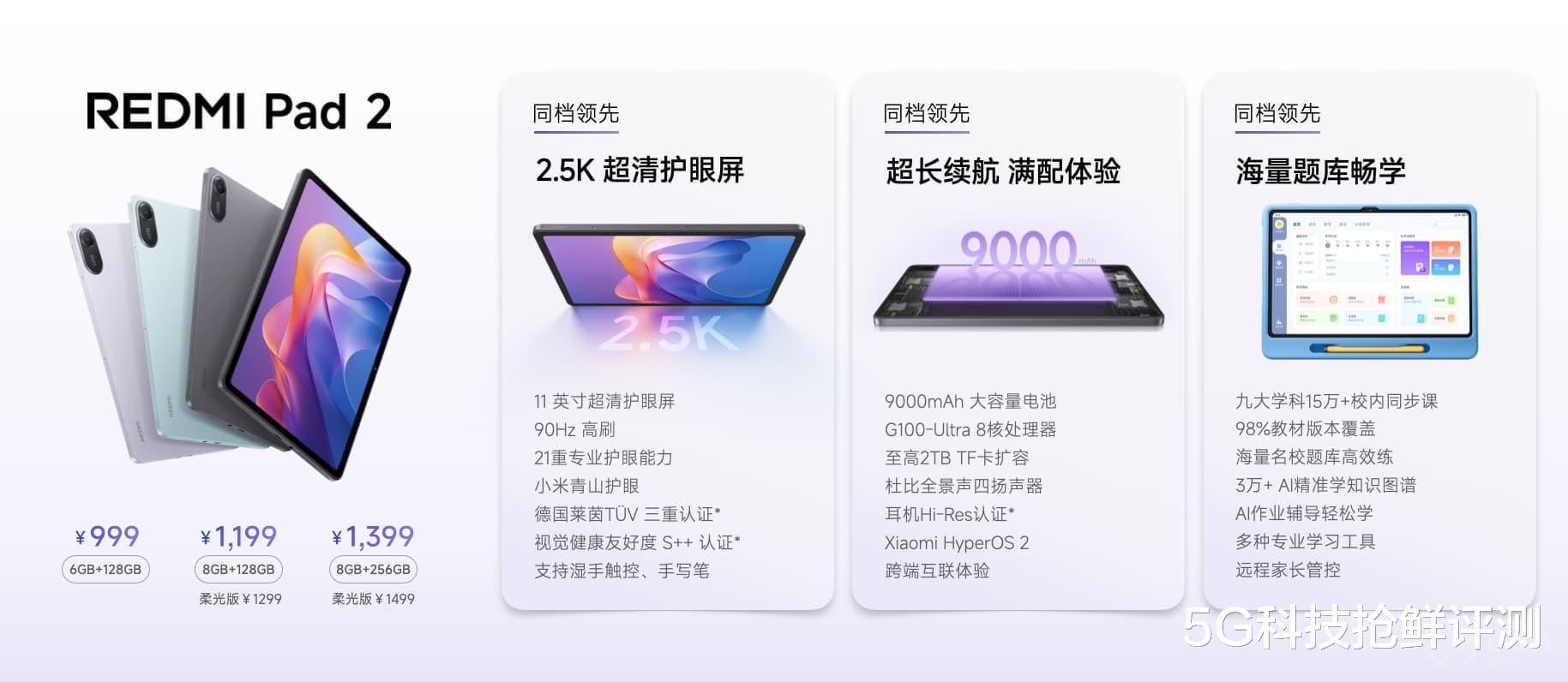 REDMI Pad 2正式发布,2.5K超清柔光屏,海量教育一步到位