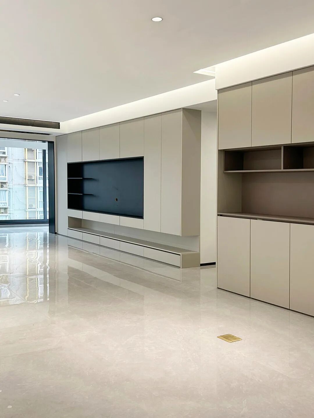 所以,我把木地板拆了。换上了750*1500的哑光浅灰色瓷砖。