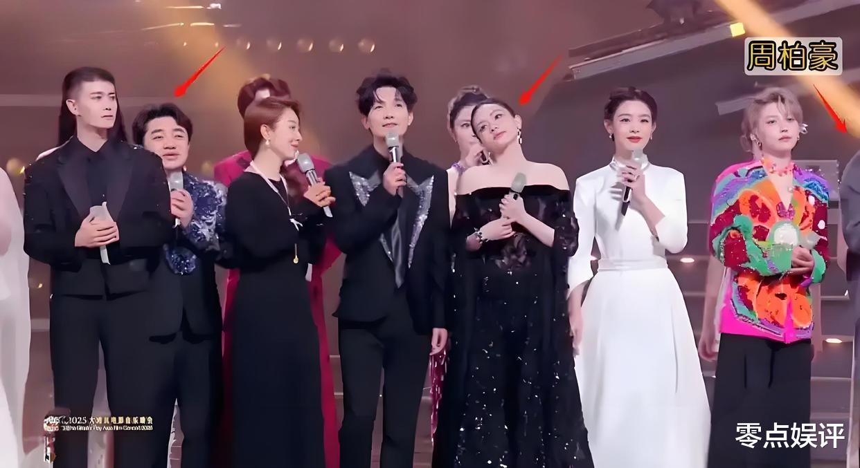 还有更搞笑的呢,原本站在陈楚生旁边的陈丽君和刘雨昕,就这么硬生生地被往后挤。周柏豪那叫一个惨啊,被刘惜君这 “霸气横跨” 的动作直接顶出了镜头,存在感瞬间归零。网友们有句话形容得太贴切了:“她一个人,把站位玩成了叠叠高的游戏。”