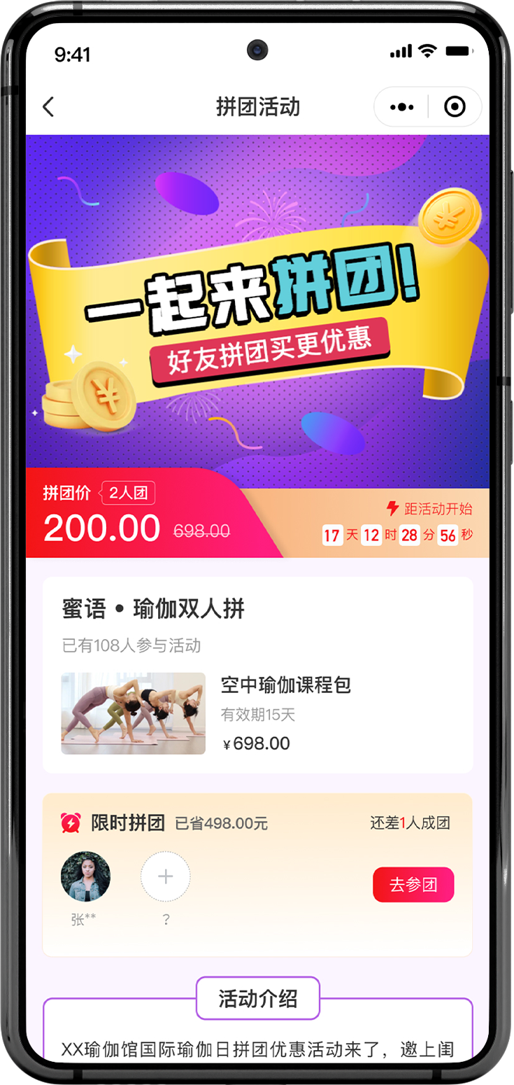 智能拼团追踪:菲特云瑜伽管理系统实时显示拼团进度,自动提醒未成团用户邀请好友