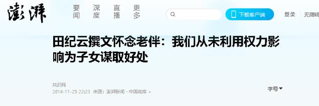 【4】共识网——田纪云撰文怀念老伴:我们从未利用权力影响为子女谋取好处