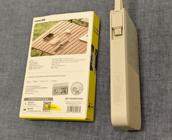 自带线是高频使用点,临时外出、通勤途中拿出来就能用,不用翻包找线。线材长度中规中矩,短距离使用更顺手。实际用下来,接口数量不多,但也因此逻辑简单,不容易出错。如果同时要给多个设备充电,就需要轮流来,更适合个人日常使用。