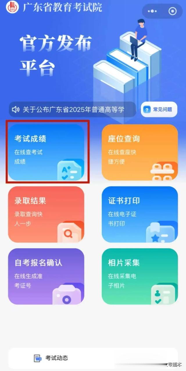 第一步:微信搜索进入广东省教育考试院小程序,点击考试成绩。