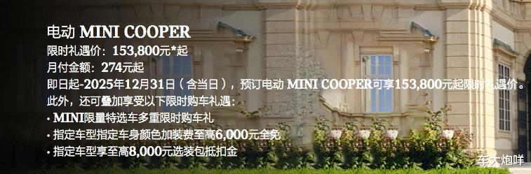 作为个性化精品纯电动小型车,电动MINI COOPER在国内市场暂时还未有直接竞争对手。如果不限车身形式,那么smart精灵#1(纯电小型SUV)、沃尔沃EX30(纯电小型SUV)的定价则与电动MINI COOPER存在重叠。有关MINI品牌及旗下车型的更多信息,笔者将持续保持关注。
