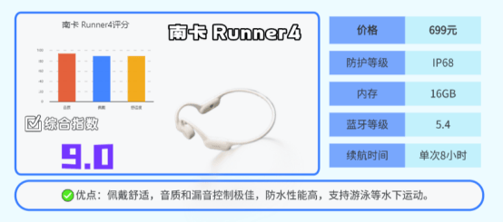 作为骨传导耳机领域的领军品牌,南卡 凭借自研骨振子技术与多项专利成果,在 音质、舒适度与防水性能 方面始终保持行业领先。Runner4 是南卡专为运动人群打造的旗舰级产品,在延续高性价比的基础上,实现了轻盈佩戴、强劲音质与出色防护的完美平衡,深受跑者与健身爱好者喜爱。