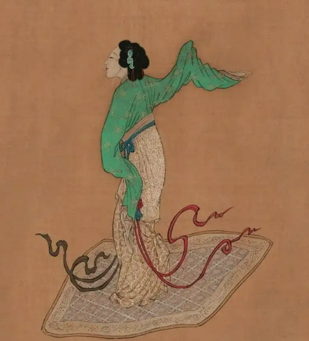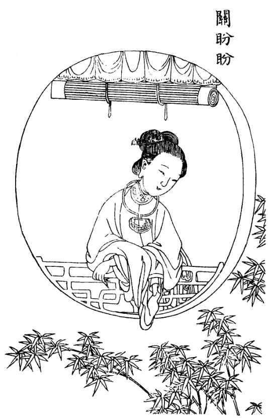 关盼盼(唐代舞妓,雅多风姿,工部尚书张愔之妾。白居易赞她:“醉娇胜不得,风袅牡丹花。”张愔死后,关盼盼念旧爱而不嫁,独居燕子楼十余年。张仲素、白居易有燕子楼诗,流播甚广。在后世竟离奇演变为“白居易写诗逼死关盼盼”故事),燕羽差池,空楼不暖。宜配白乐天(即白居易),蹴绿衔红,呢喃于桃夭柳亸之间。