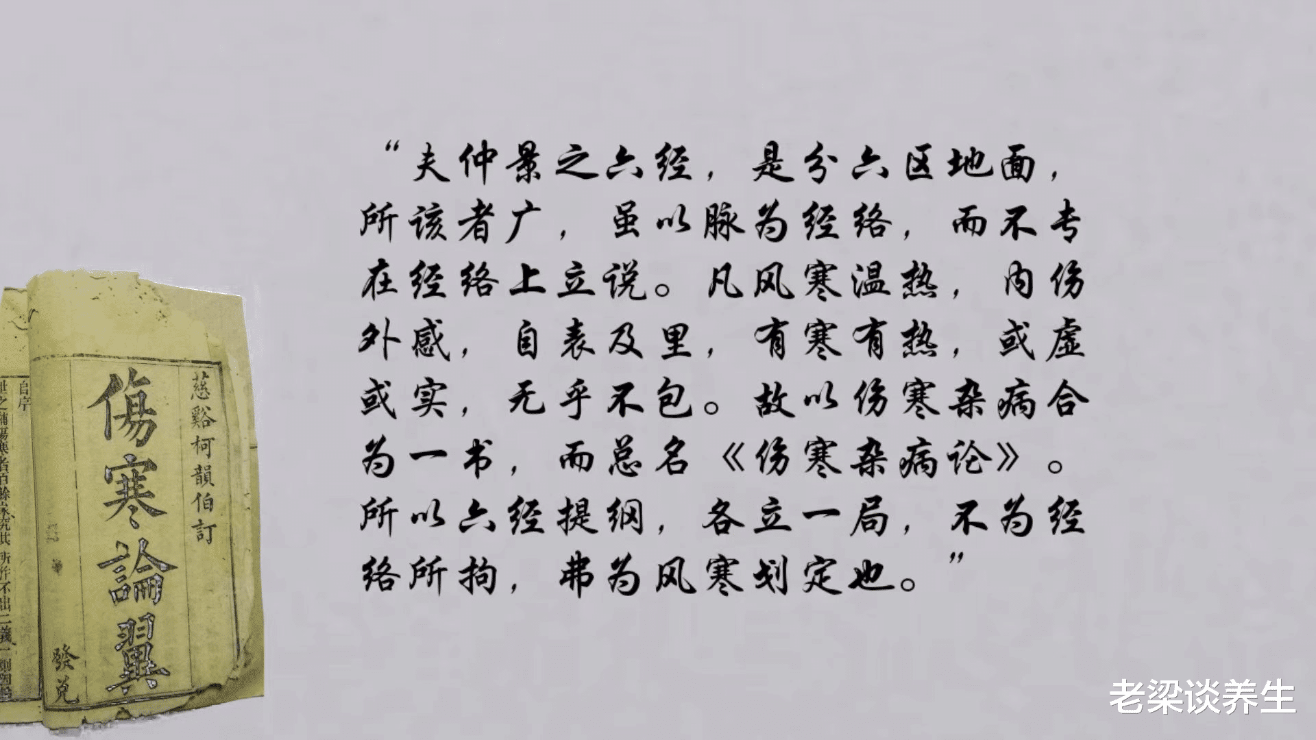柯韵伯在《伤寒论翼》中曾言:“夫仲景之六经,是分六区地面,所该者广,虽以脉为经络,而不专在经络上立说。凡风寒温热,内伤外感,自表及里,有寒有热,或虚或实,无乎不包。故以伤寒杂病合为一书,而总名《伤寒杂病论》。所以六经提纲,各立一局,不为经络所拘,弗为风寒划定也。”在柯韵伯眼中,仲景的六经就如同划分了六个不同的区域,其涵盖的范围极为广泛,并非仅仅局限于经络的范畴。