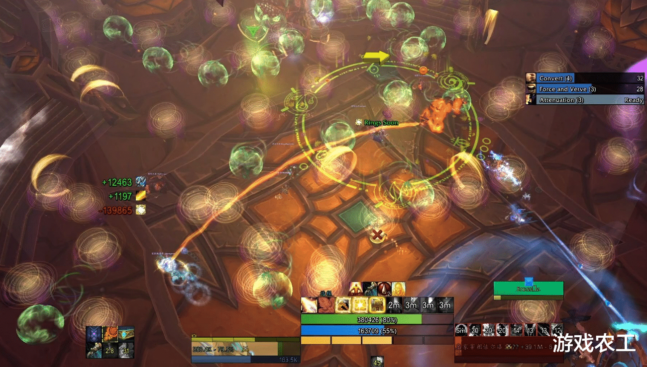 那么为什么这个本会被罚这么多金币呢?罪魁祸首其实就是音波这个机制。佐尔洛克的这个技能会在地面上生成大量迅速扩散的音波圈,排列密集且有规律。玩家必须在极短的间隙中连续、精准地移动,就像在玩节奏游戏。所以一旦不小心踩中了,最终的结果就是灭团,那么根据规则该罚金就罚金,该重开就重开。