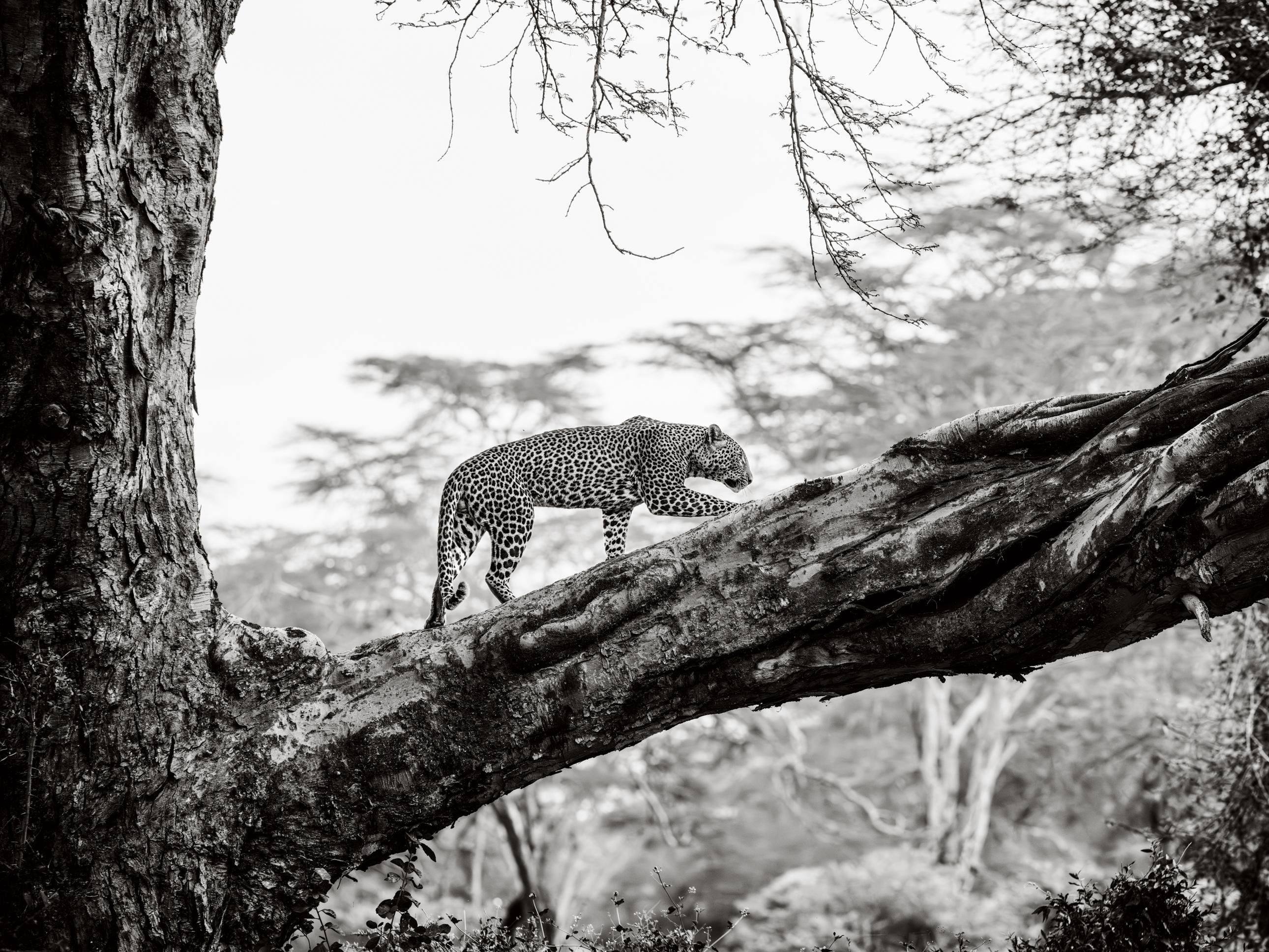 偶遇一只豹子,是难得且令人屏息的瞬间。这只威风凛凛的猫科动物是在肯尼亚纳库鲁湖畔一片茂密的猴面包树林深处被拍到的。它起初栖息在树枝上,但随后沿着粗壮的树枝优雅地漫步——这对摄影师来说,是一次真正的“必去清单”体验。