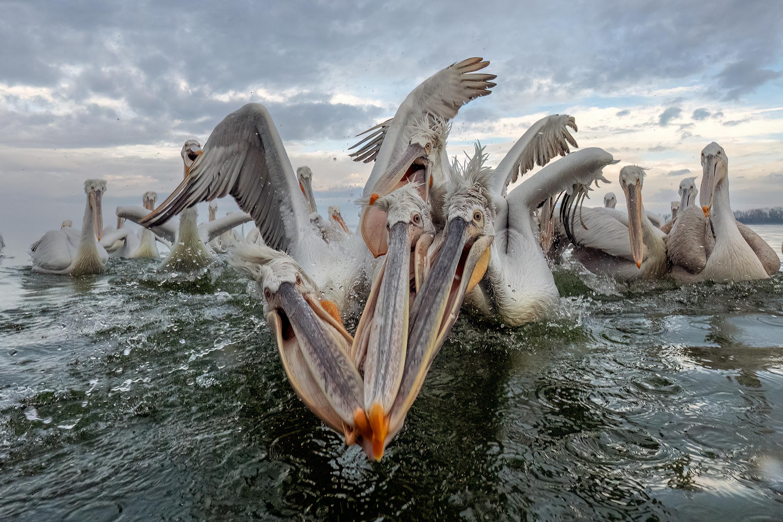 这张鹈鹕群的照片是在希腊科基尼湖上的一艘船上拍摄的。