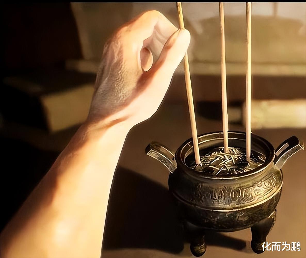 说到这里,有人可能会说,那么,用双手将三根香同时插上,不是就可避免香灰烫手的悲剧了吗?这种做法倒是行得通!不过,它与上香礼仪有些不符,因为民间供香时,无论是祭祀天地时所供的天地人;亦或是道教所供的三清;还是佛教所供的三宝,他们的身份地位都有尊卑之分,尊者居左,卑者居右。三根香同时插入香炉,常常会没有次序感。