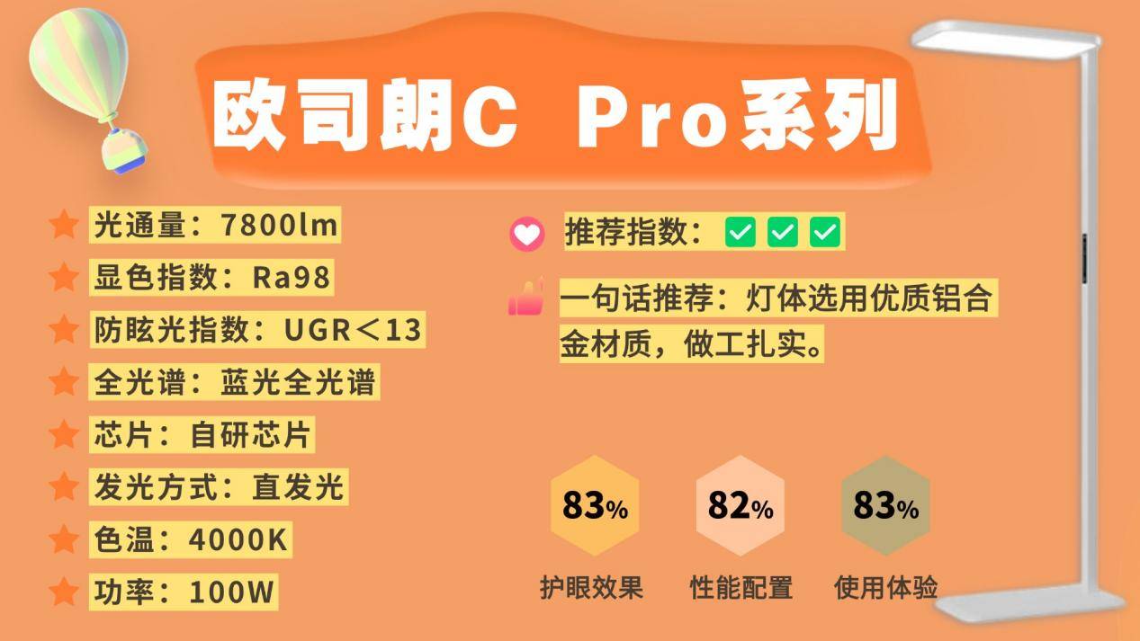 护眼大路灯排名前十的品牌有哪些?欧司朗C Pro系列护眼大路灯采用全光谱LED光源,矩形一体式灯面结合直下式发光技术,照度高且光线分布均匀,可达到AA级照明标准,功能上提供触控式上下光源独立控制,可根据阅读、写作或休息场景灵活切换光线,但整体来看,这款灯的智能化程度一般,没有配备入座感应或恒定照度调节等便捷功能,交互体验相对基础,值得肯定的是,灯体选用优质铝合金材质,做工扎实,在用料和耐用度上表现较好。