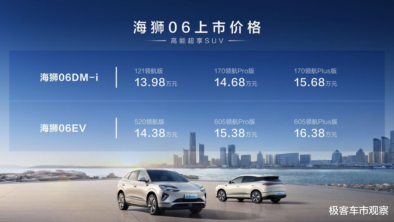 7月24日,比亚迪海洋网全新中型SUV海狮06正式上市,海狮06DM-i官方指导价为13.98万元-15.68万元、海狮06EV官方指导价为14.38万元-16.38万元,新车推出领航焕新礼、领航充电礼、领航无忧礼、领航保养礼、领航智联礼多重购车礼遇。高能超享SUV海狮06,凭借颜值、安全、舒适、驾控、智能的全维进阶,为用户带来高品质出行新体验,成为智趣生活新伙伴。