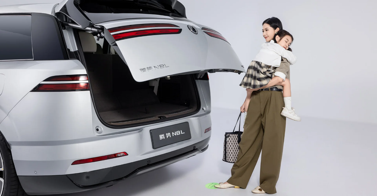 试过某竞品的“感应开门”:脚扫十次有八次没反应,最后还是得放下购物袋掏钥匙;也见过靠语音控制开门的,吵杂的商场停车场喊破喉咙没动静。腾势N8L的手势开门反而简单:提着重物靠近,后视镜感应到就自动解锁,脚扫一下尾门还能开启——上周买完菜双手拎着五六个袋子,不用放下东西就能上车,这时候才懂:家庭用户要的科技,不是“语音控制开天窗”这种噱头,是“解放双手”的实在。
