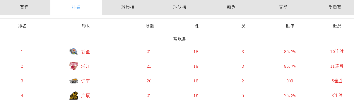 目前为止,在球队排名第一、第二、第三位的可都不简单哦。新疆、浙江以及辽宁人队表现相当强劲,并且积分也很高。