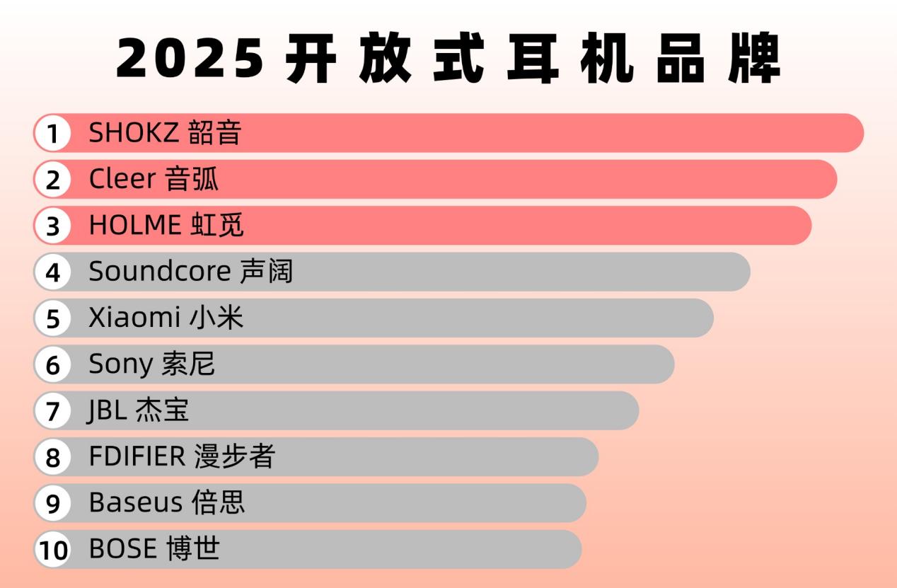 建议选一些知名的大品牌,比如漫步者、小米这种大品牌,质量技术会更成熟,或者选择口碑好的专门做开放式耳机的品牌,比如虹觅、韶音都是口碑很不错的,可以参考下面图中的耳机品牌。