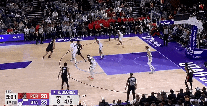 NBA季前赛,爵士对阵开拓者的比赛正在进行中。