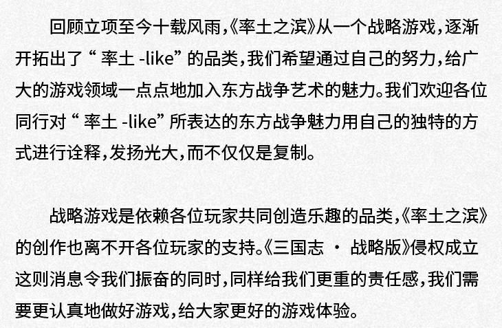 回到这次抄袭案本身,坦白说全行业抄率土的SLG不在少数,为什么率土一定要跟三战死磕到底呢?
