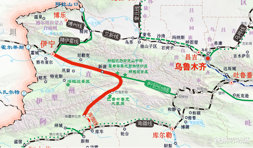 普速铁路及扩能铁路改造方面,伊宁至阿克苏的伊阿铁路的先行工程中标结果也已出炉,第一名是中铁隧道局,先行工程SX标段主要工程为巴音布鲁克隧道进口至巴音布鲁克站。伊阿铁路新建段按国铁I级、单线标准建设,设计车速160公里/小时,计划月底开工,2030年10月底建成。