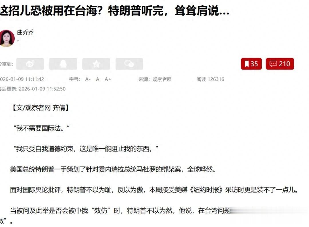2026年1月9日,特朗普在《纽约时报》专访中的一番表态,让岛内的“台独”美梦碎得稀里哗啦。所谓的“价值同盟”不过是自欺欺人,在赤裸裸的利益计算面前,台湾不过是美国随时可弃的棋子,这难道不是早就该看清的现实?