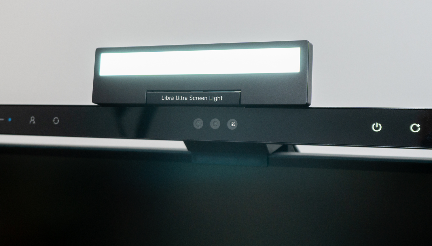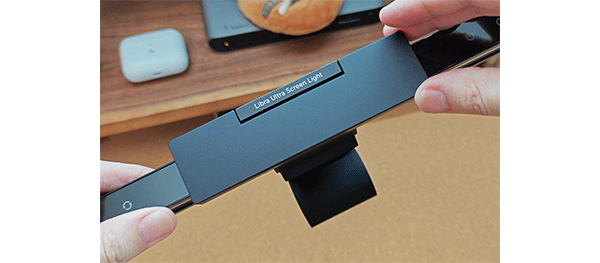 挂灯中间的“Libra Ultra Screen Light”标识下方为折叠补光灯,向上翻起后会自动点亮,为用户提供额外的面部照明。这一设计不仅实用,也增添了产品的科技感。