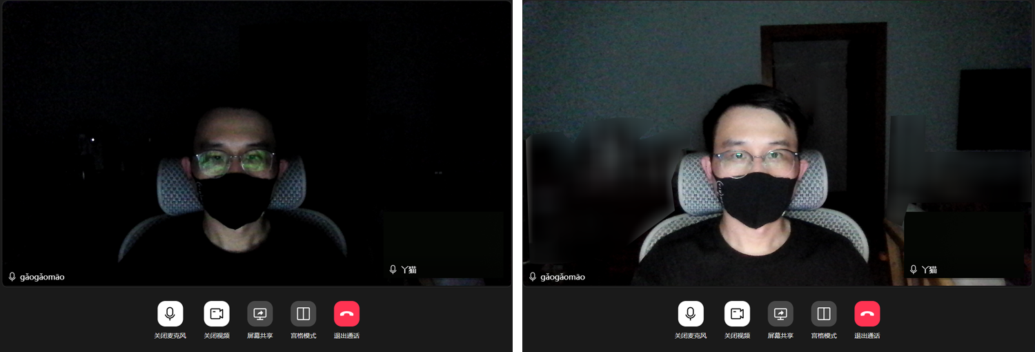 对比补光灯开启前后的效果,能明显看到右图的人体轮廓清晰度,以及立体感的提升。在TLCI>95的高色温美颜补光灯照射下,肤色也趋于自然方向。
