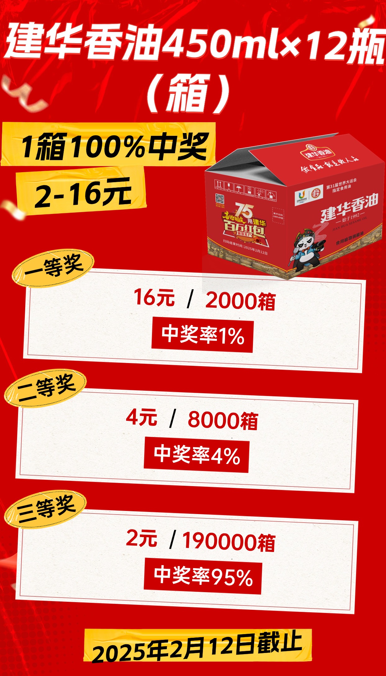 建华食品10月推出“喜迎国庆 用建华 百万红包 回馈客户”活动,短短1个月时间,共有6848人参与,扫码总量高达61644次,2025年2月12日活动就结束了,快来参与,共享百万红包。