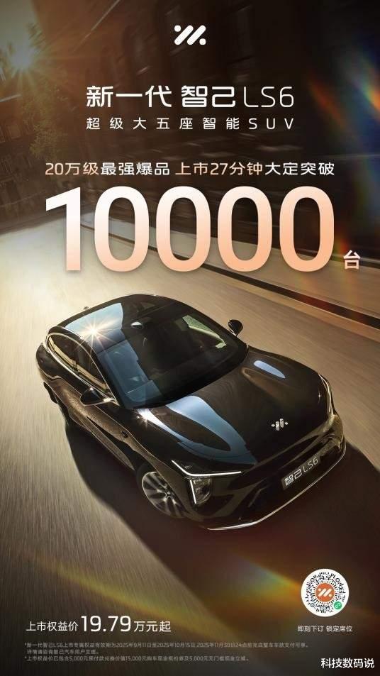 新一代智己LS6共推出9大版本,上市权益价19.79万元~26.99万元。自发布以来,市场反响热烈:上市当晚,仅27分钟大定突破10,000台;9月20日~21日周末双日锁单破5,000台;门店试驾持续爆满,热度不减。