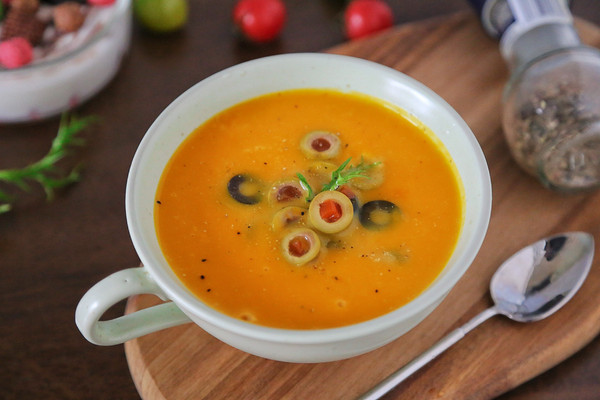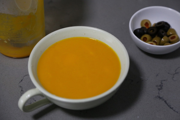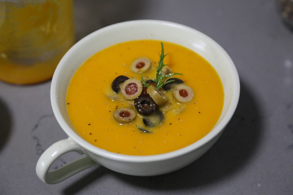 暖暖香浓的南瓜汤,配上开胃的橄榄,真是冬日里值得品尝的美味~