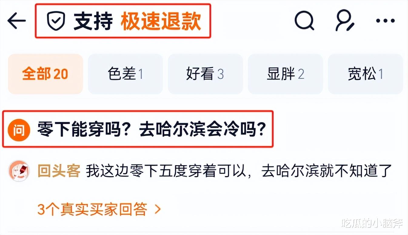 更绝的是,店铺问答区早就有姐妹埋下伏笔:“这件能去哈尔滨穿吗?”