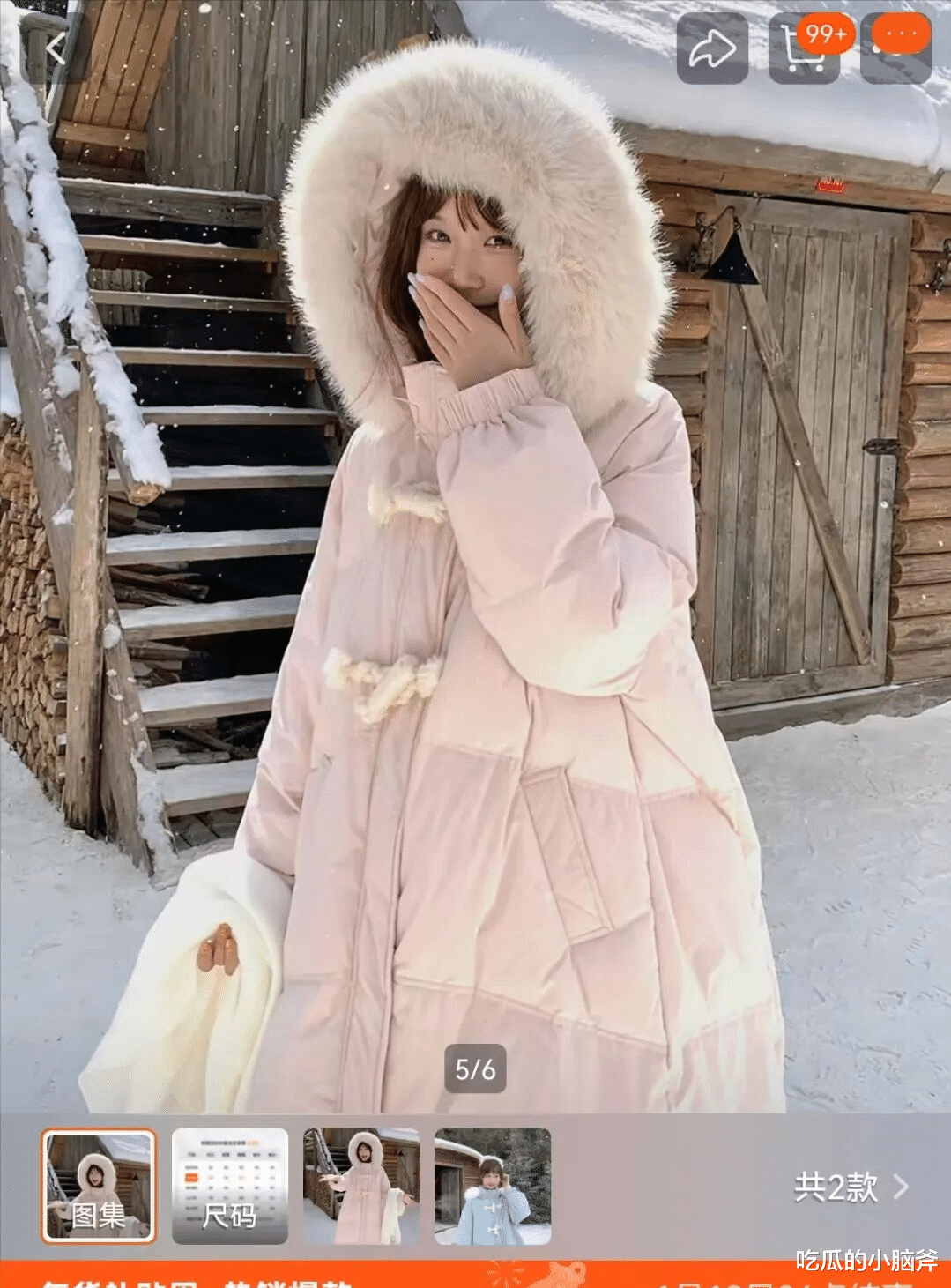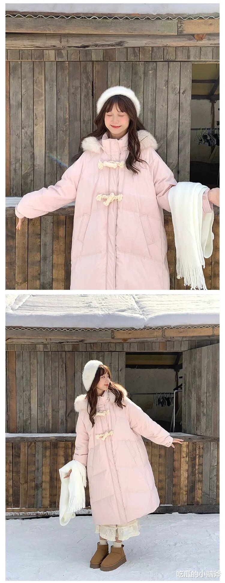 白鸭绒填充,保暖性拉满,模特穿起来粉嫩嫩的,确实戳女生审美。