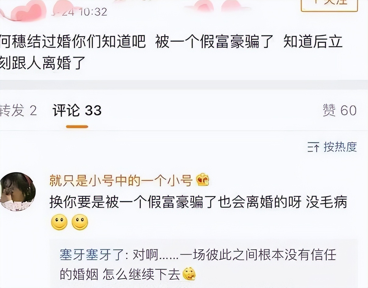 随着两人关系被坐实,很多人送上祝福,但何穗却因为过往情史,被扒了个底朝天。