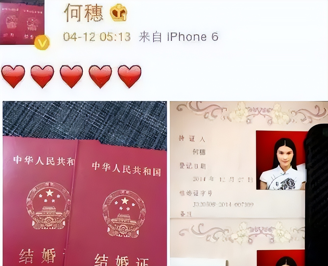 2015年,何穗突然亮出结婚证,告知大众她已婚的消息,还有粉丝问她真的假的,她回复比珍珠还真。