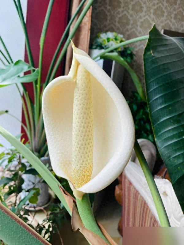 今年春天我的那棵突然冒箭杆时我还以为是新叶柄;结果两周后苞片炸开奶油色小帆布袋时全家都围着拍照直播——那场面堪比抢五月天门票。