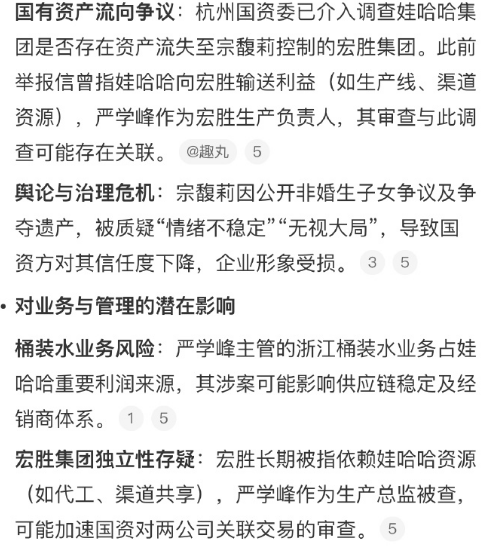 10 月 2 日,杭州市上城区纪委对严学峰立案审查的消息,将娃哈哈内部治理争议推向台前。作为宗馥莉麾下核心高管,严学峰现任宏胜饮料生产中心总监,还在近 190 家娃哈哈关联企业任监事,其被查虽被娃哈哈高层归为 “私人原因”,但与桶装水业务调整的时间共振,暴露深层利益纠葛。