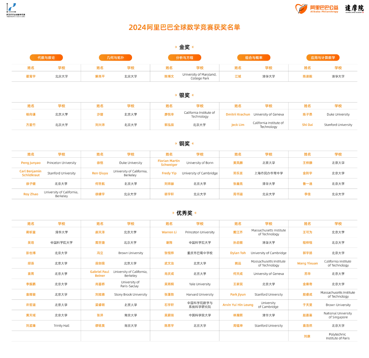 2024年阿里巴巴全球数学竞赛的获奖结果如下: