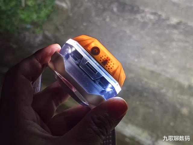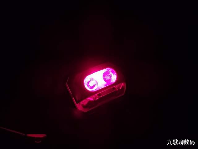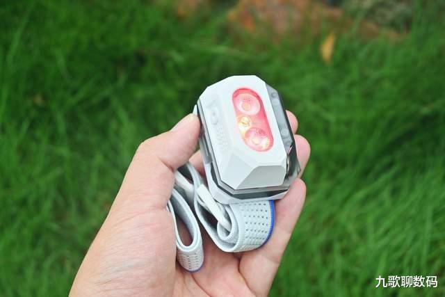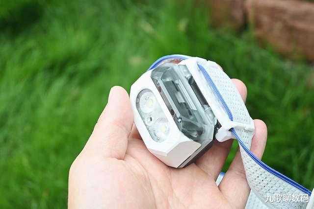 而正中的“小红点”则是红外感应装置。这也是该头灯的一大亮点:手势感应。开面状态下同时按双键1.5秒即可开启感应,此时只要手部划过感应区域,便可控制灯光的点亮与熄灭。这对于一些特殊场景(比如手脏)就很实用啦,实测手势感应的灵敏度还是不错的,不会出现挥动多下也无反应的情况。