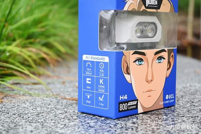 这次的产品包装设计的很有新意,虽仍为瓦楞纸盒,但帅哥“贴脸开大”的封绘搭配“额头”顶部的开窗设计,正好展示出佩戴的实际效果,还是蛮巧妙的。底部一角的“800”字样为其最高亮度,足够满足日常所需。而另侧的ECL则为便携头灯的缩写。